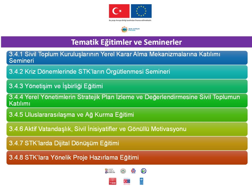20 Kas Genel Tematik Eğitimler ve Seminerler Aralık 26, 2025 By Admin 0 comments Sivil Toplum Kuruluşlarının Yerel Karar Alma Mekanizmalarına Katılımı Semineri ve Kriz Dönemlerinde STK’ların Örgütlenmesi Semineri 27-...Continue reading