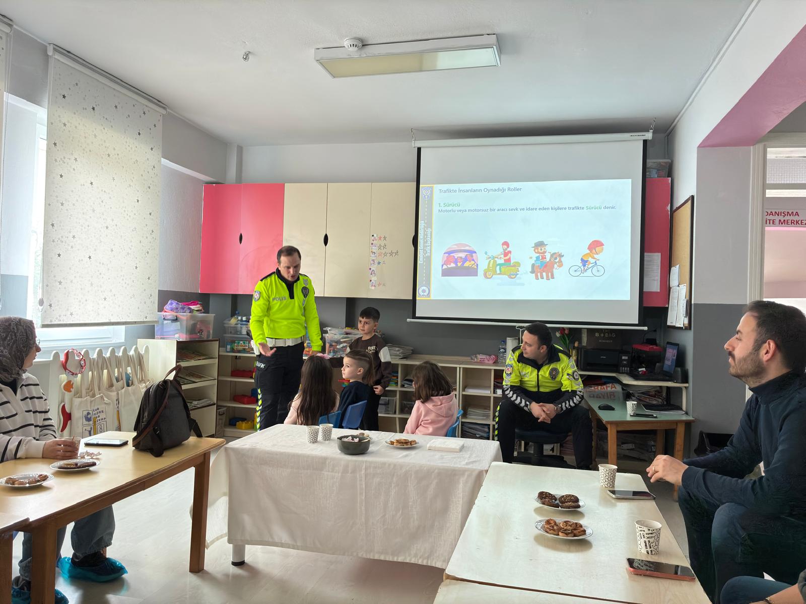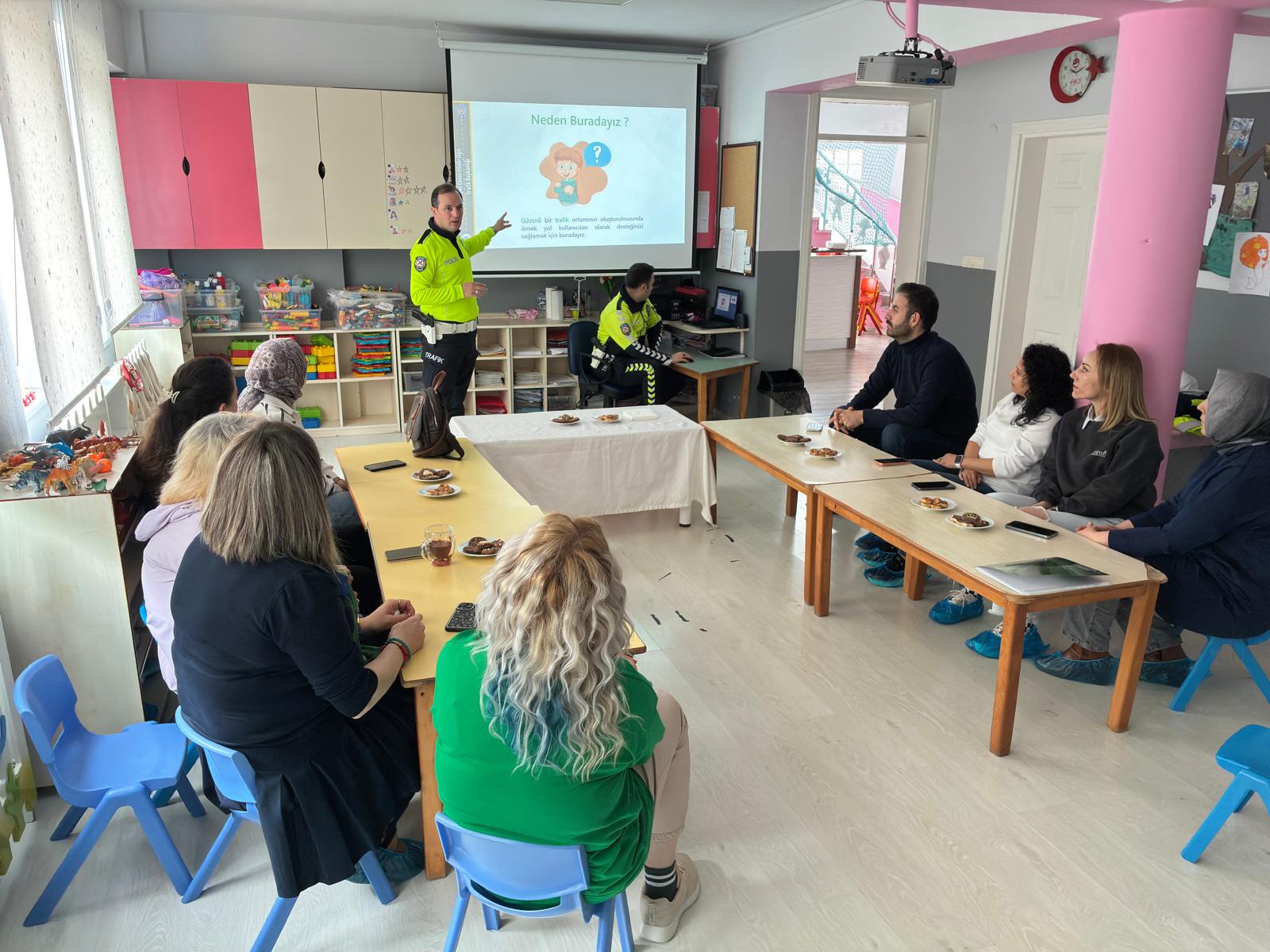 Programa anaokulunda görev yapan 12 öğretmen katıldı. Öğretmenlere çocuklara yönelik trafik eğitiminin nasıl verilmesi gerektiği hem teorik hem de uygulamalı olarak anlatıldı. Trafik Polisleri tarafından gerçekleştirilen sunumlarda; yayaların uyması gereken kurallar, karşıdan karşıya geçişlerde dikkat edilmesi gereken hususlar, trafik ışıkları ve işaretlerinin anlamları, emniyet kemeri kullanımı, araç içinde güvenli davranışlar ve okul servislerinde uyulması gereken kurallar detaylı şekilde ele alındı. Ayrıca çocukların dikkatini çekmek amacıyla kullanılabilecek görsel materyaller, oyun temelli öğrenme yöntemleri ve drama teknikleri hakkında da öğretmenlere bilgi verildi.
